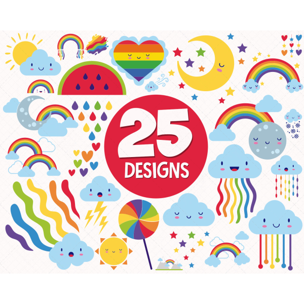 25 Rainbows Kawaii Characters SVG, Rainbows Kawaii Characters PNG, Kawaii Characters Vector Clipart, Cute Weather Characters SVG, Digital